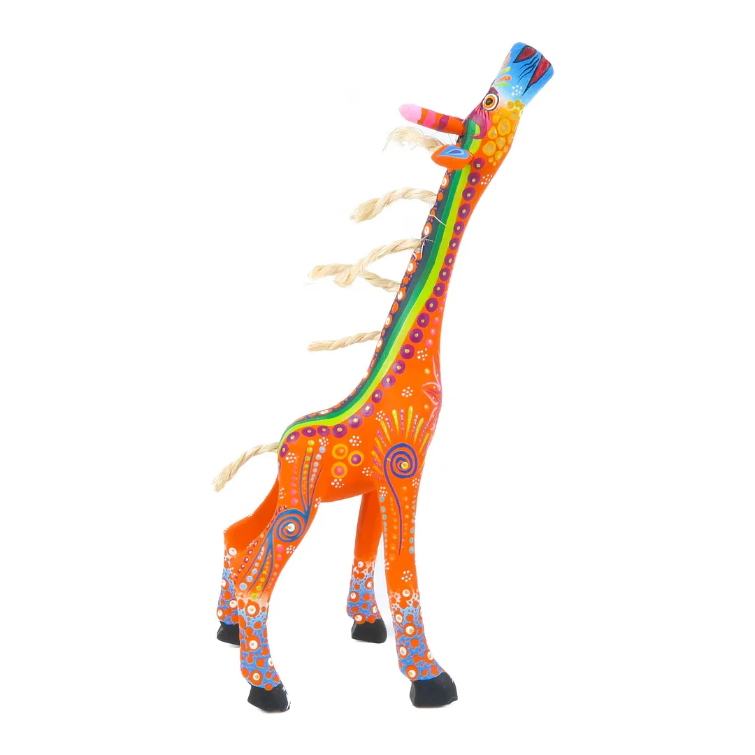 Whimsical giraffe alebrije wood carving by the Sosa family workshop in Oaxaca, Mexico. Expertly crafted out of copal wood and painted with great detail.