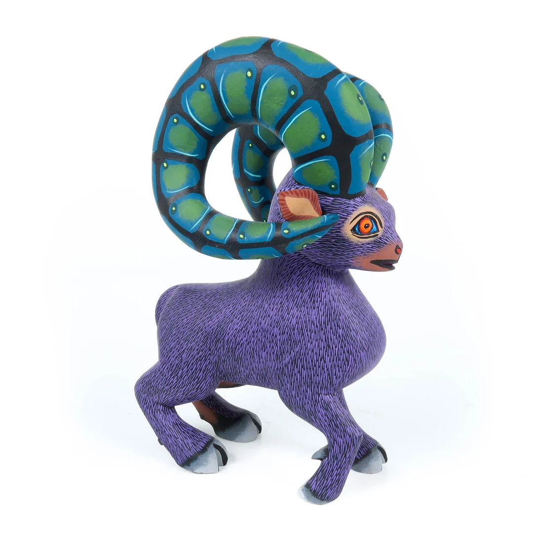 Bighorn ram alebrije wood carving by top Oaxacan artist Eleazar Morales. Eleazar is known worldwide for his incredibly detailed and realistic animal wood carvings.