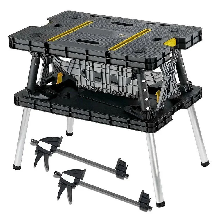Heavy Duty Portable Folding Table Tool Storage Stand Workbench SawhorseThe Keter Folding Portable Workbench Sawhorse is perfect for DIY projects and home improvement. Made of weather-resistant polypropylene and aluminum, it supports up to 1,000 lbs. Its foldable design ensures portability and convenience.